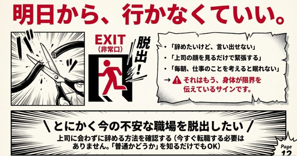 「辞めたいけど、言い出せない」「上司の顔を見るだけで体が緊張する」「毎朝、仕事のことを考えると眠れない」。