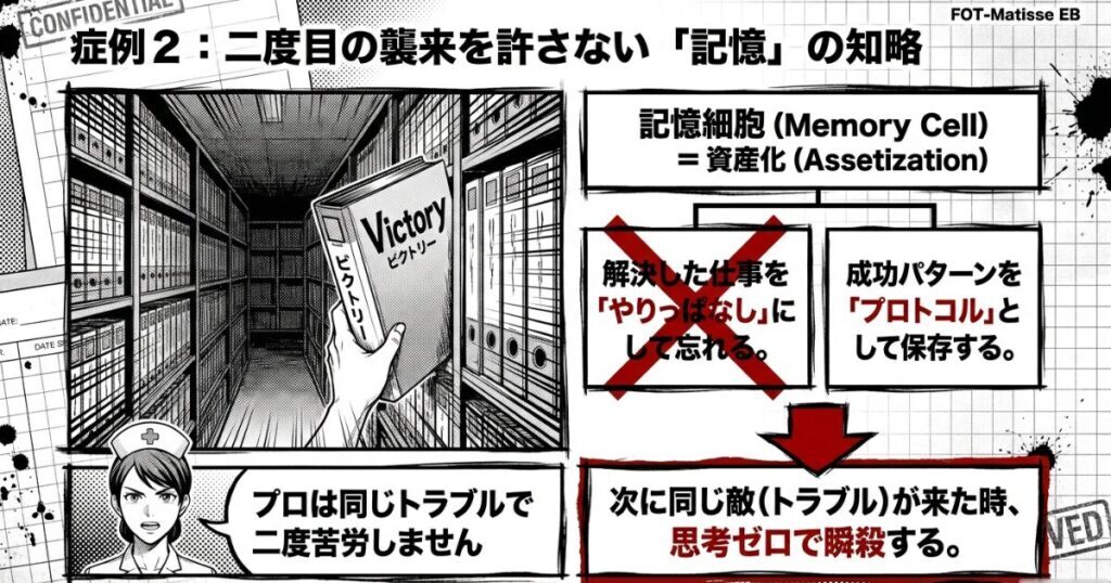 • 記憶の資産化: 一度作った解決策を「記憶細胞」として残し、次に同じ問題が起きた時に即座に対応できる仕組みを作る。