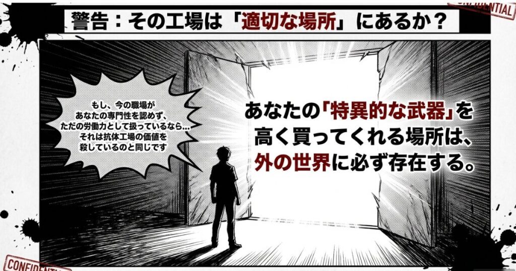 一つの環境に固執する必要はありません。あなたの「抗体」が最も輝き、多くの人を救える『新天地』をアセスメントしましょう。