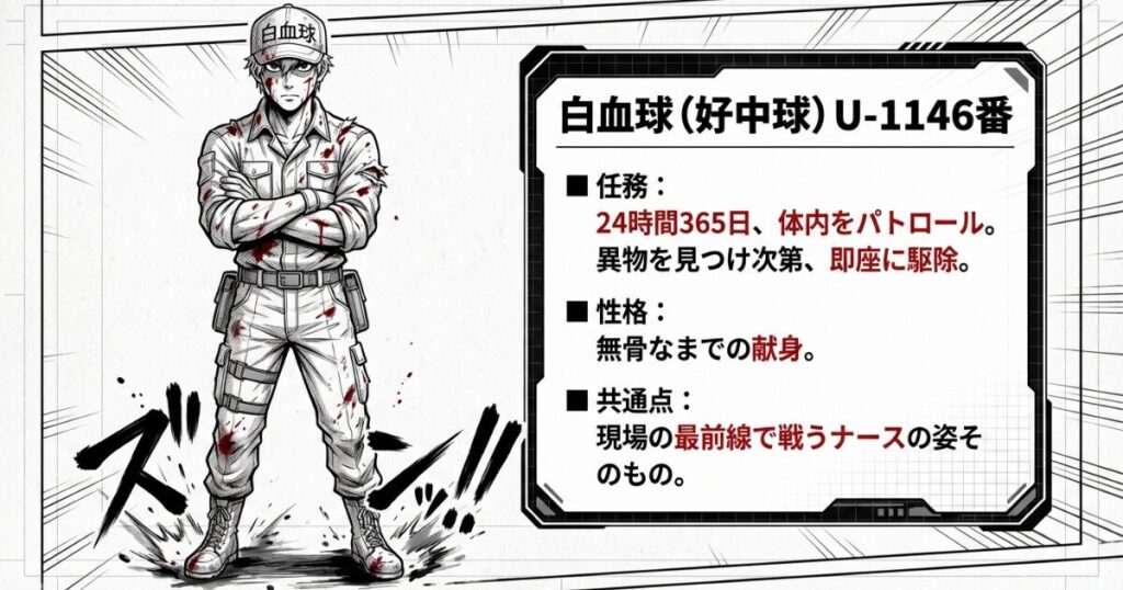 あります…。アニメ『はたらく細胞』の白血球1146番さんを見ていると、24時間パトロールして異物が出れば即出動。その無骨な献身に勇気をもらう反面、もし自分があそこまでストイックだったら、とっくに動けなくなっているかも…って。