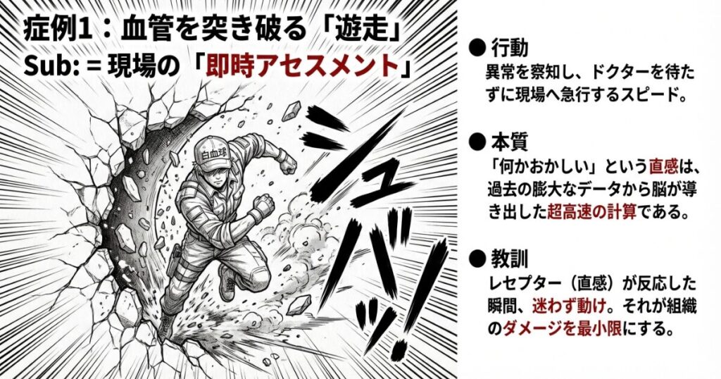 1146番が遊走して現場へ急行するように、僕たちも自分のレセプターが反応した瞬間、迷わず動ける準備をしておくことが、患者さんの命を守る知略になるんだよ。