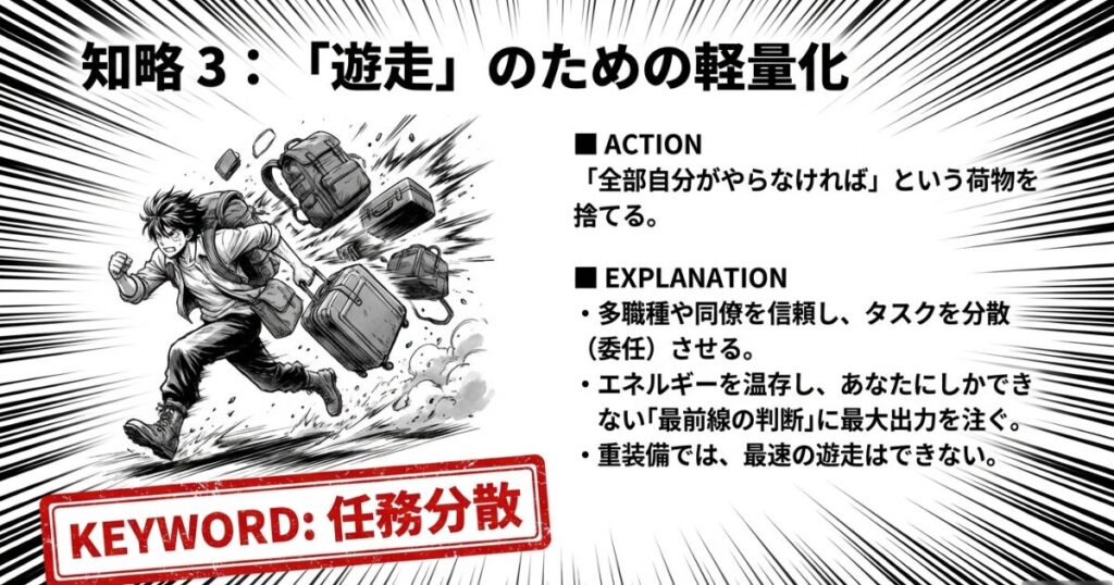 結果: 自身のエネルギーが温存され、本当にあなたにしかできない「最前線の判断」が必要な時に、最大出力を出せるようになる。