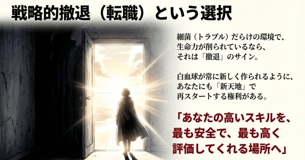その気づきこそが、あなたの人生を救う『戦略的トリアージ』です。細菌だらけの劣悪な環境で心中する必要はありません。