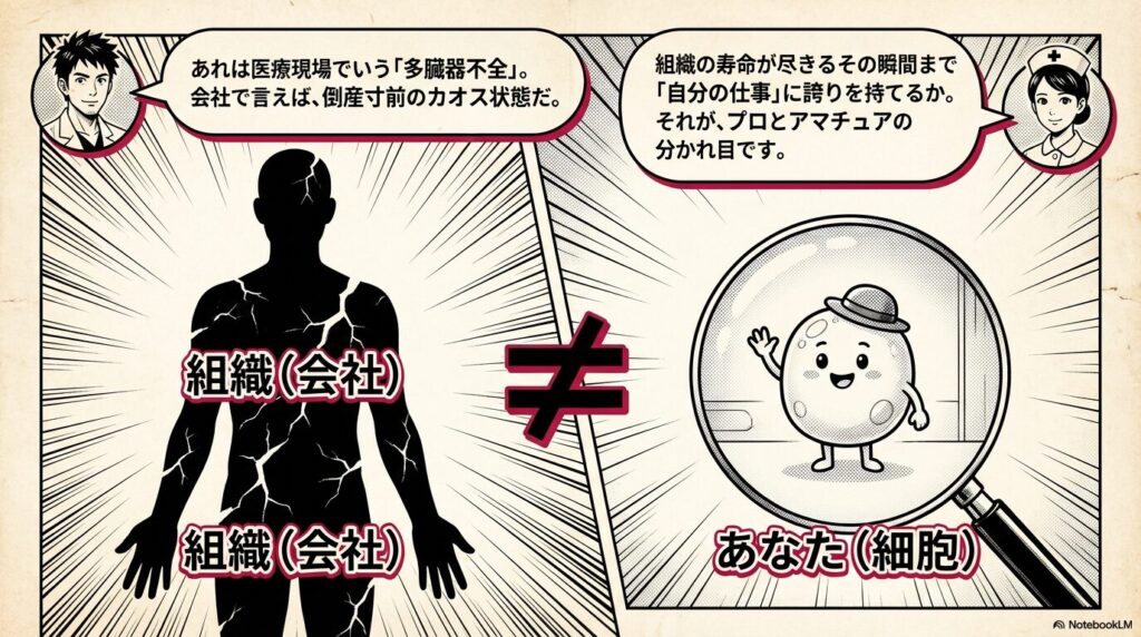 今回は、シリーズ最終回で描かれた「細胞たちの最後の選択」をカルテ(題材)に、もしあなたの職場に「終わりの時」が訪れたらどう振る舞うべきか、その生存戦略を回診します。