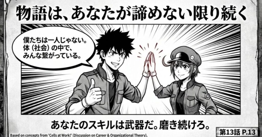 - 最後までプロであれ: 最終回の細胞たちは、世界(体)が滅びようとする瞬間まで自分の役割を全うした。その姿勢こそが、次のキャリアへの「推薦状」になる。