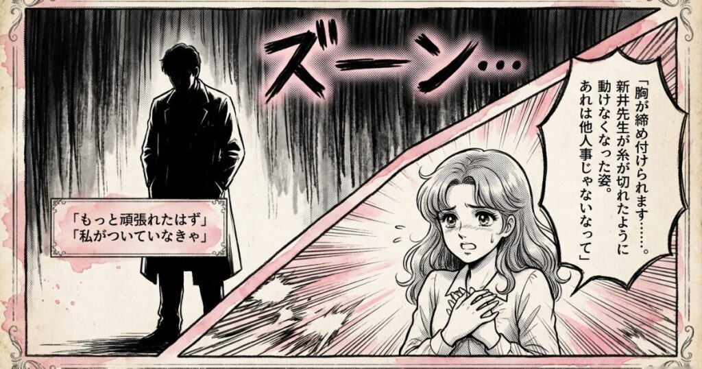 新井先生が突然姿を消したとき、周囲は無責任だと思ったかもしれない。でも、僕は彼女を責める気にはなれなかった。あれは心がもう空っぽになって、自分を守るための『唯一の防衛本能』だったんだよ。