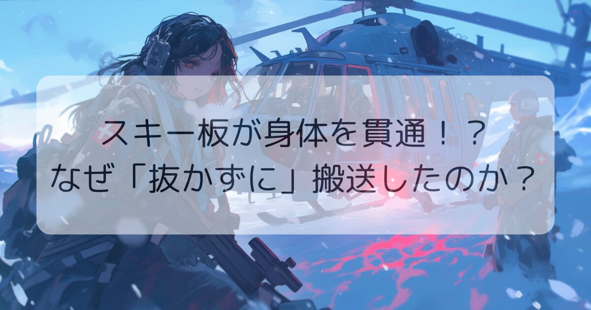 スキー板が患者の身体を突き抜けた衝撃事故。今回は、なぜ医師たちは邪魔な板を「抜かなかった」のか? 救急医療の鉄則と、極限状態での判断を回診します。