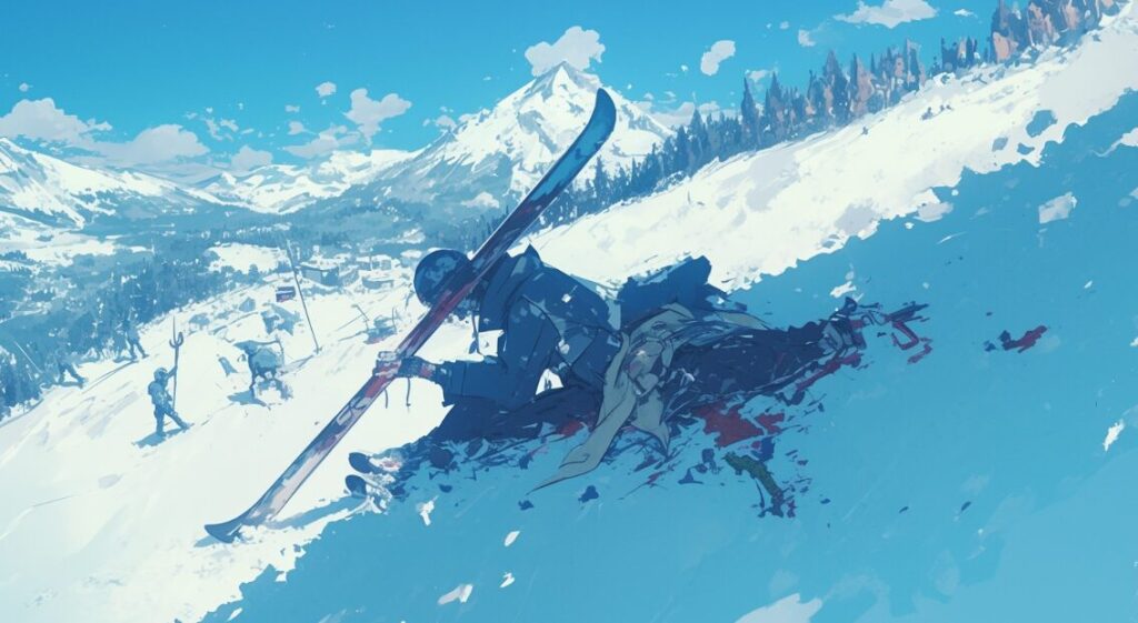 - 事故内容:スキー場で滑走中の二人が衝突し、片方のスキー板がもう一人の骨盤(身体)を貫通した。