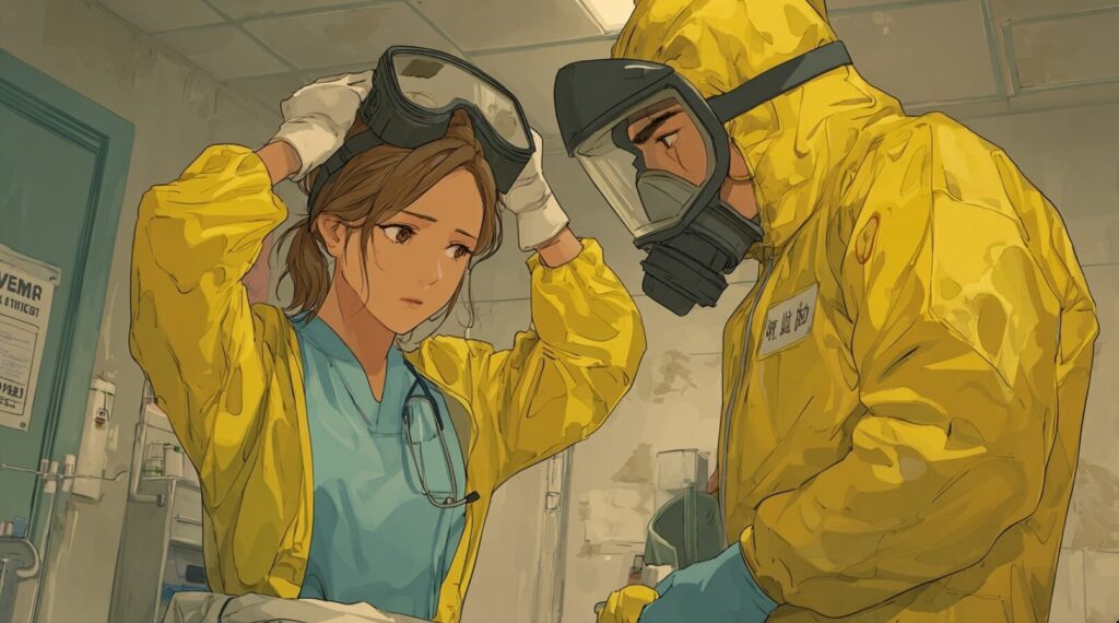 • 混同の理由②: 『コード・ブルー』3rdシーズンで「シアン中毒」が発生し、防護服(タイベック)を着るシーンがあったため、ビジュアルが重なった。