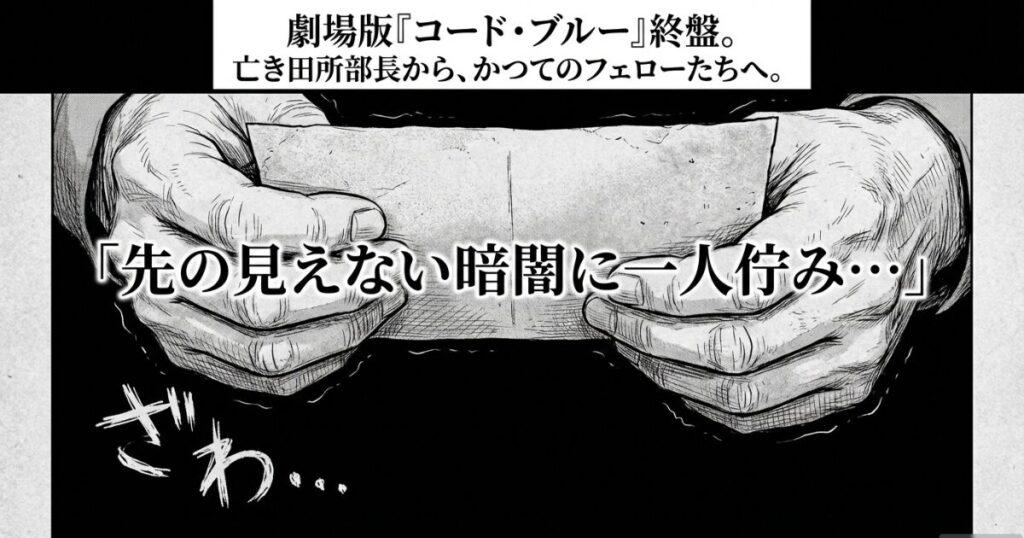 指導医としての孤独。それは「答えのない暗闇」を一人で背負おうとするから生じるものです。田所先生は自らの死をもって、後に続く者たちへ『プロとしての心の持ちよう』という最も価値のある処方箋を遺したのですよ。