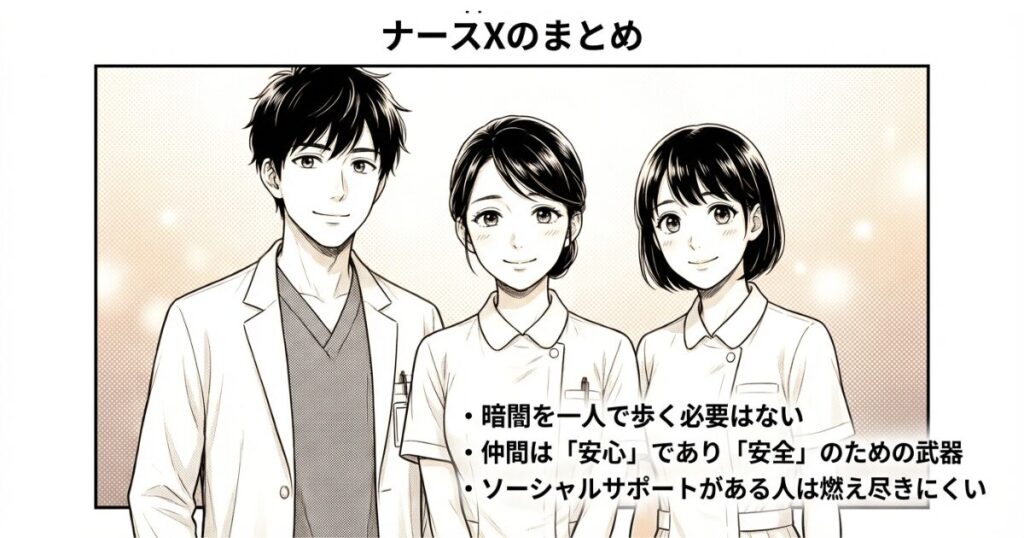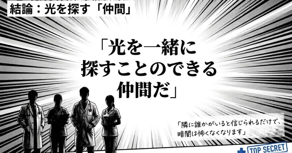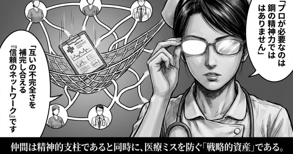 仲間の存在は、ただの精神的支柱ではなく、医療ミスを防ぎ、最高のパフォーマンスを出すための戦略的資産なのですよ。