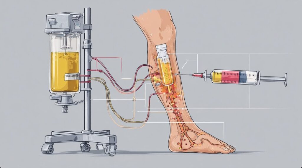圧迫を解く前に、生理食塩水や乳酸リンゲル液などを急速輸液します。これにより、毒素(カリウムやミオグロビン)を薄め、腎不全を防ぎます。 - 心電図モニターの監視