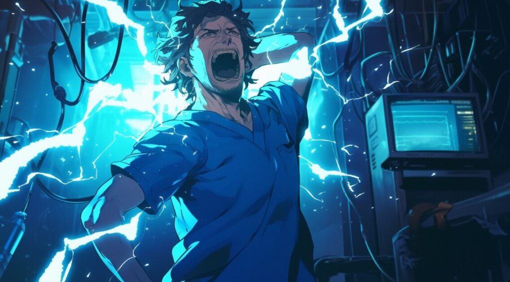 感電のショックで手も痺れていたはずだけど、藍沢はその場で開胸処置(心臓マッサージ)を行った。自分の痛みより患者の命を優先する、凄まじいプロ根性だよ。