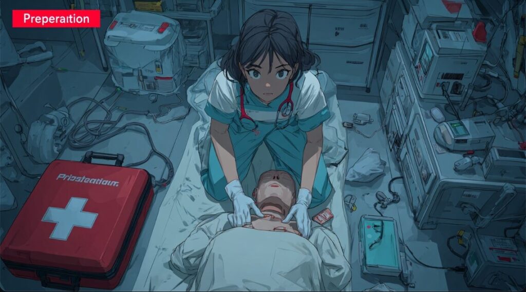 「かわいそう」「怖い」という感情が湧いたら、すぐに「ルート確保」「バイタル測定」などの作業に意識を切り替えましょう。手を動かすことが心の安定剤になります。 - 声を出し合う