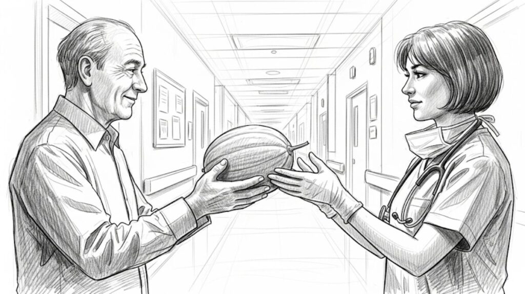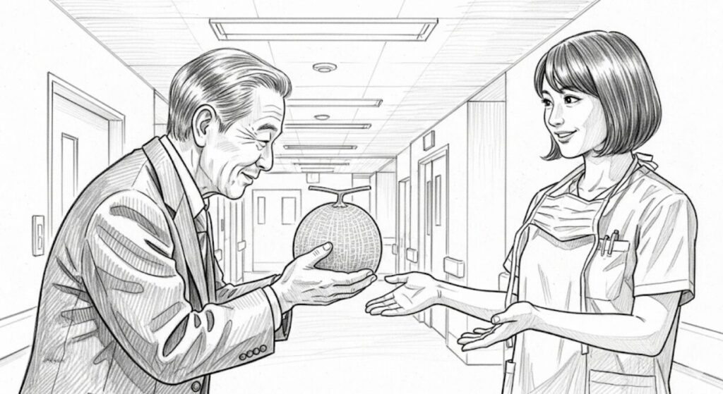 ナースX皆さん、ごきげんよう。ナースXです。オペの後の甘いもの…いえ、今回は「メロン」に隠された深い意味を紐解いていきましょう。一枚の請求書と一つの果物が織りなす、言葉以上のコミュニケーション。その核心に、今からメスを入れます。