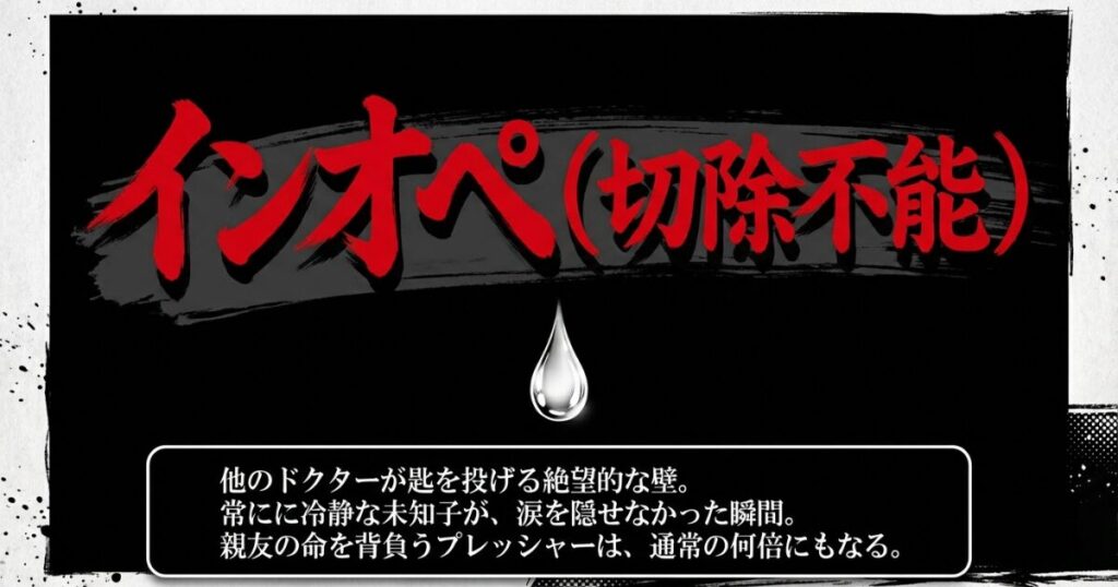 信頼関係があるからこそ、執刀医としてのプレッシャーは通常の何倍にもなります。未知子が流した涙は、彼女が機械ではなく、血の通った「人間」であることを証明した瞬間でもありました。