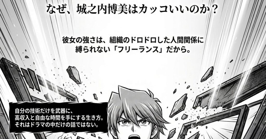 城之内先生があんなにカッコいいのは、組織に頼らず『自分の技術』だけで生きてるからだよね。モヤモヤしているなら、君のスキルを高く買ってくれる場所を覗いてごらん。
