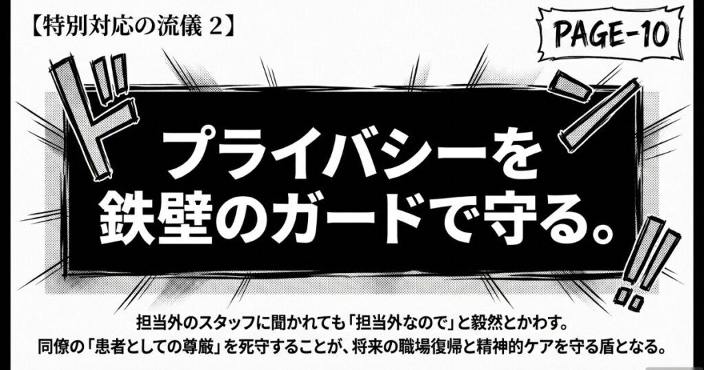 結果: 職場復帰した際、周囲の視線を気にせずスムーズに働ける環境が維持され、精神的な二次被害を防ぐことができる。