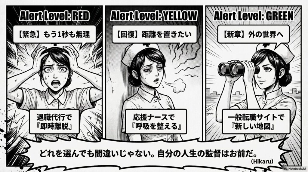 リセット効果: 一度環境を変えることで、「看護師を辞める」以外の道が見えてくる。