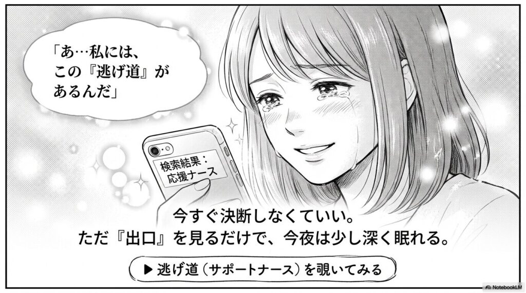 『あ、私にはこんな逃げ道もあるんだ』と確認するだけで、今日から少しだけ深く眠れるようになりますよ。」