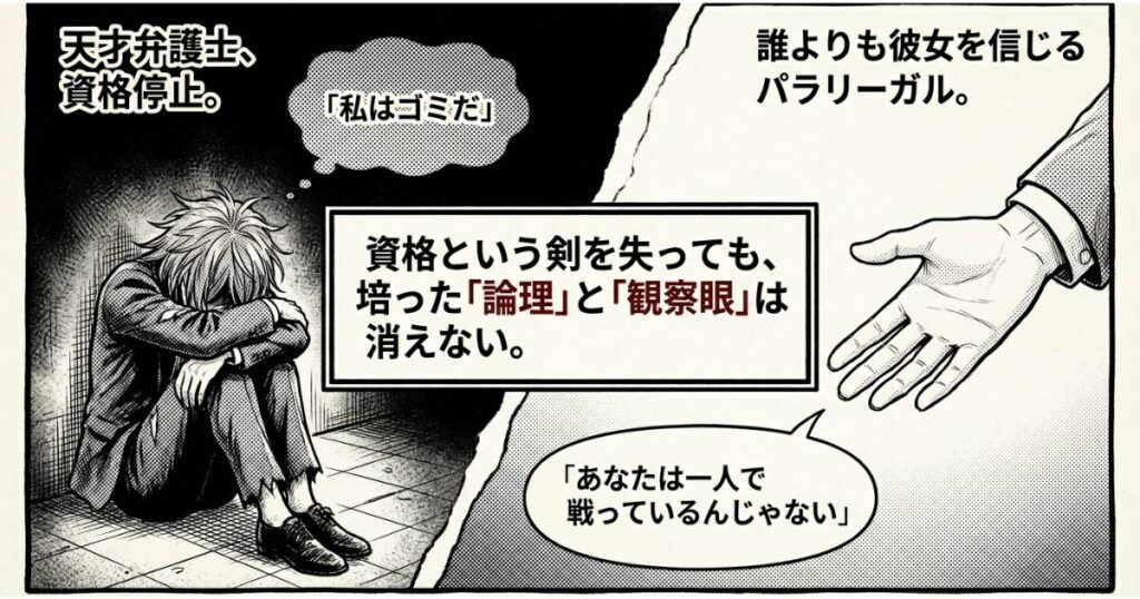その気持ち、痛いほどわかるよ。でも、杏さんが弁護士資格を失っても「事件を解決するロジック」を失わなかったように、君が現場で流した汗や培った判断力は、履歴書に書けない『無形の財産』として君の中に刻まれている。