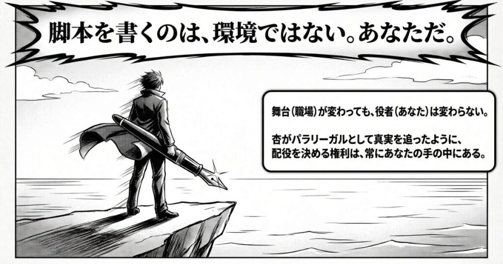 • 役割の再定義: 一つの場所、一つの方法に固執しない。杏がパラリーガルとして真実を追ったように、あなたの価値を活かせる「新しい舞台」は、世界中に広がっている。