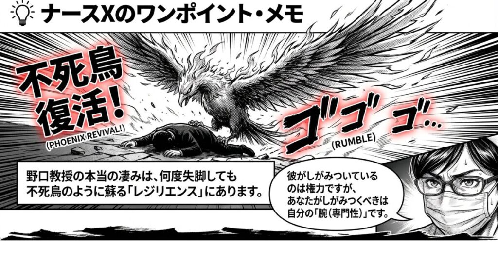 野口教授の本当の凄みは、何度失脚しても不死鳥のように蘇る「レジリエンス」にあります。彼がしがみついているのは権力ですが、あなたがしがみつくべきは自分の「腕(専門性)」です。腕さえあれば、組織という名の檻はいつでも扉を開けてくれます。